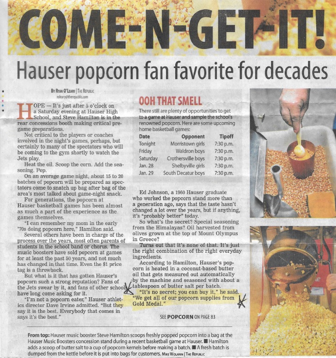 We’re proud to share how Hauser High School in Hope, Indiana has earned a reputation for popcorn excellence! It has been known as a fan favorite for decades. We appreciate the testimonial they give in this article by The Republic.