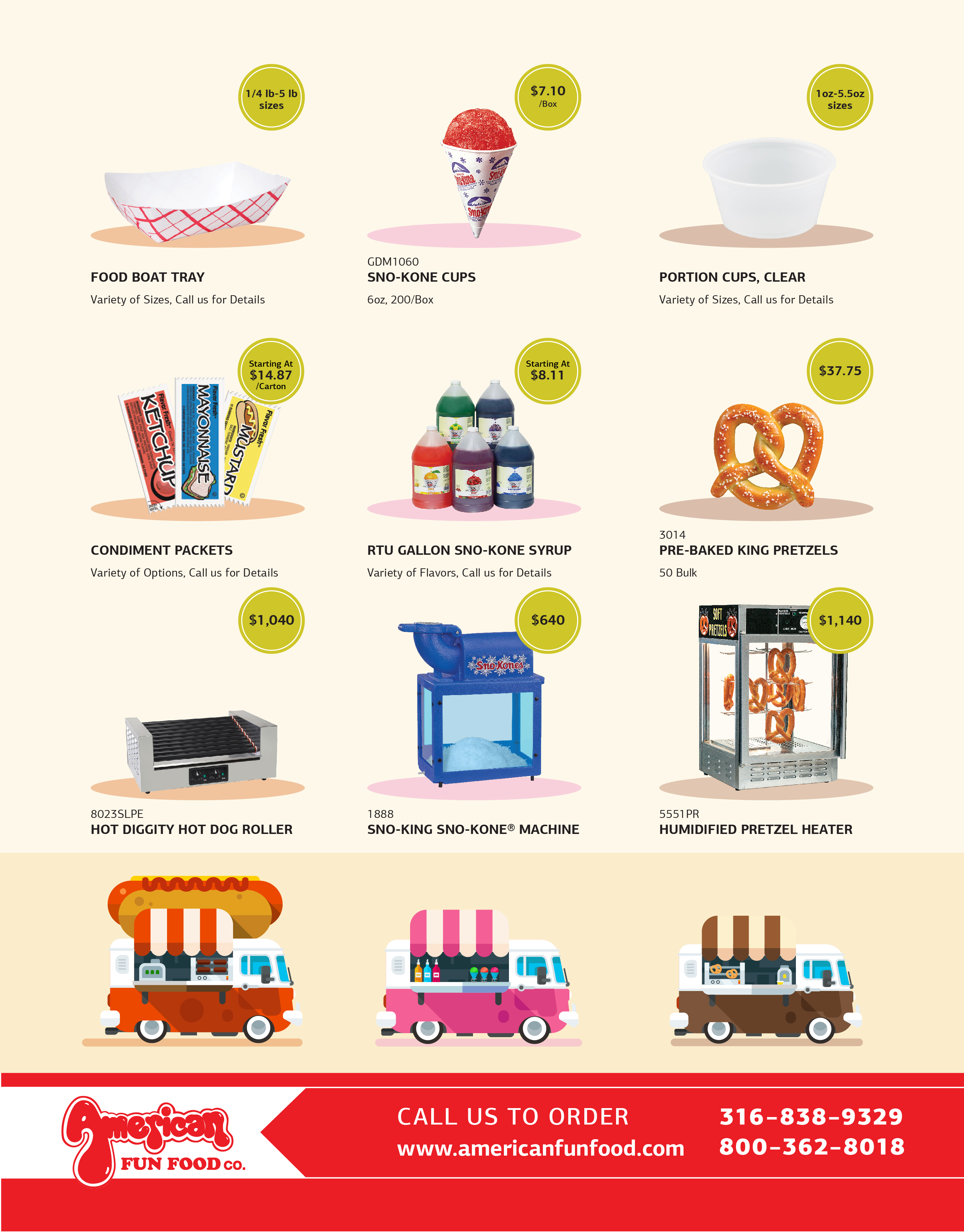 PRETZELS, SNOW CONES, HOT DOGS, AND MORE… snacks are perfect for all kinds of venues: food trucks, schools, stadiums, festivals, and concession stands to name a few! Watch your profits stack up by saving on all your supplies. Get your food supplies, serving supplies, and equipment all in one place and at an amazing price!